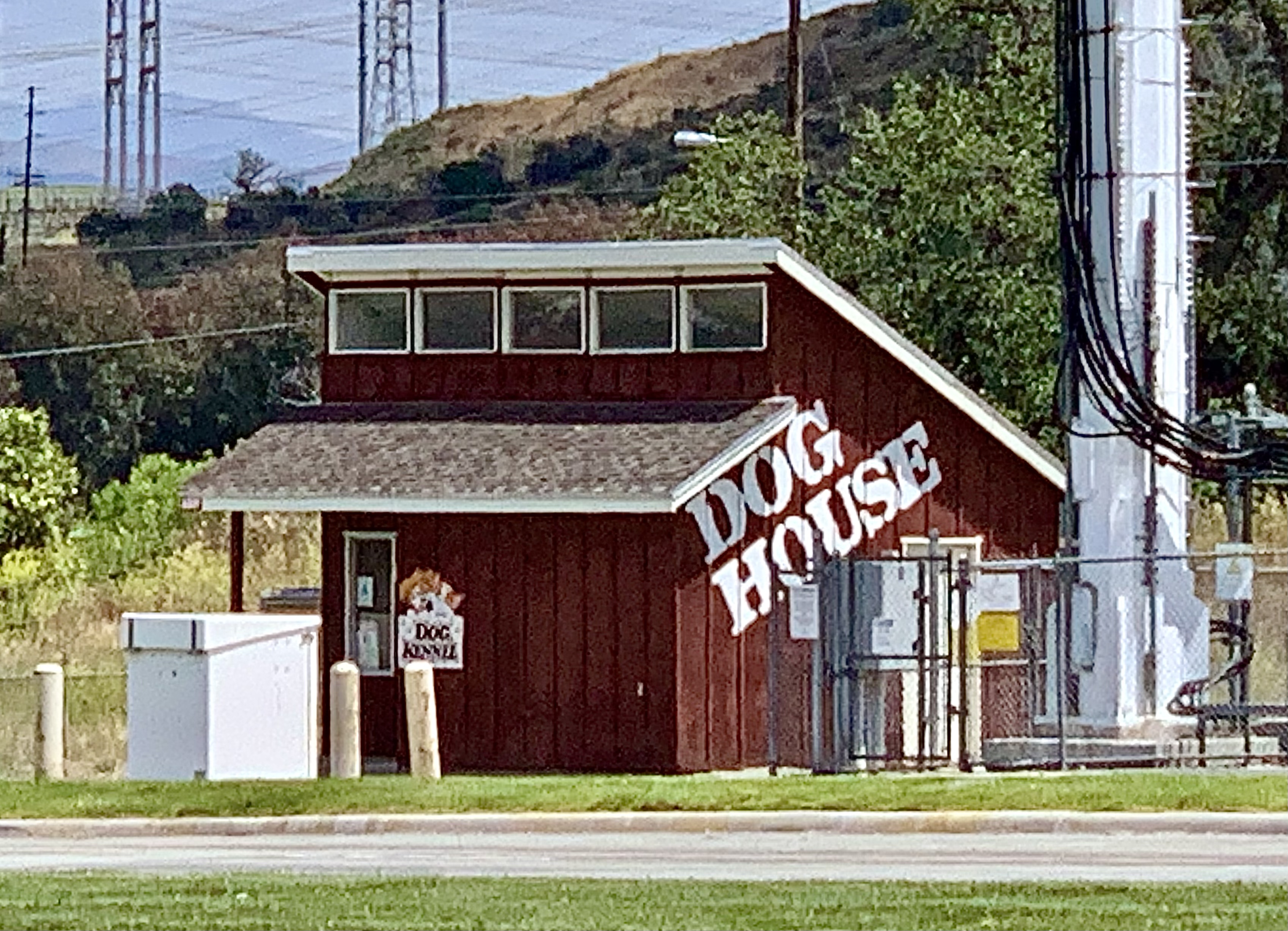 The Dog House is a pet kennel operated by Six Flags Magic Mountain that is located next to the driveway to the main parking lot.