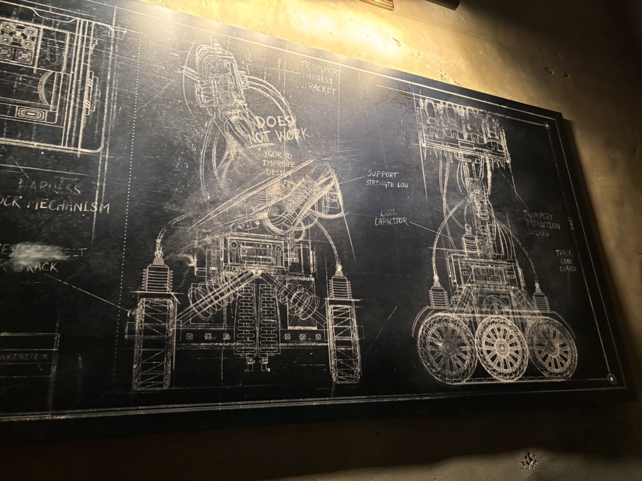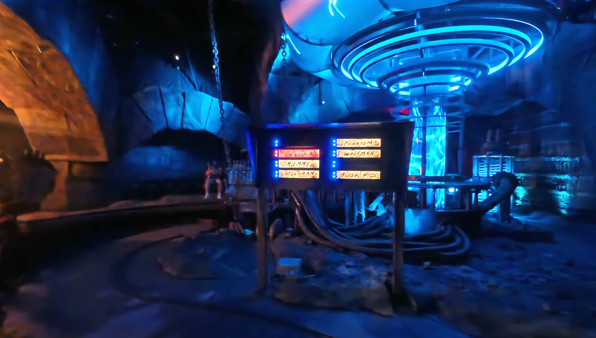 The monster is all practical, and seeing him walk directly at the audience and tower over you is a high point of the whole ride. There are so many technical elements in this pre-show that all work together to make something incredible. The story isn’t quite communicated (I’m still not sure what the actual experiment is or why the monsters have been assembled), but the basics are clear: there are lots of monsters, and you’re about to get up close and personal with them.