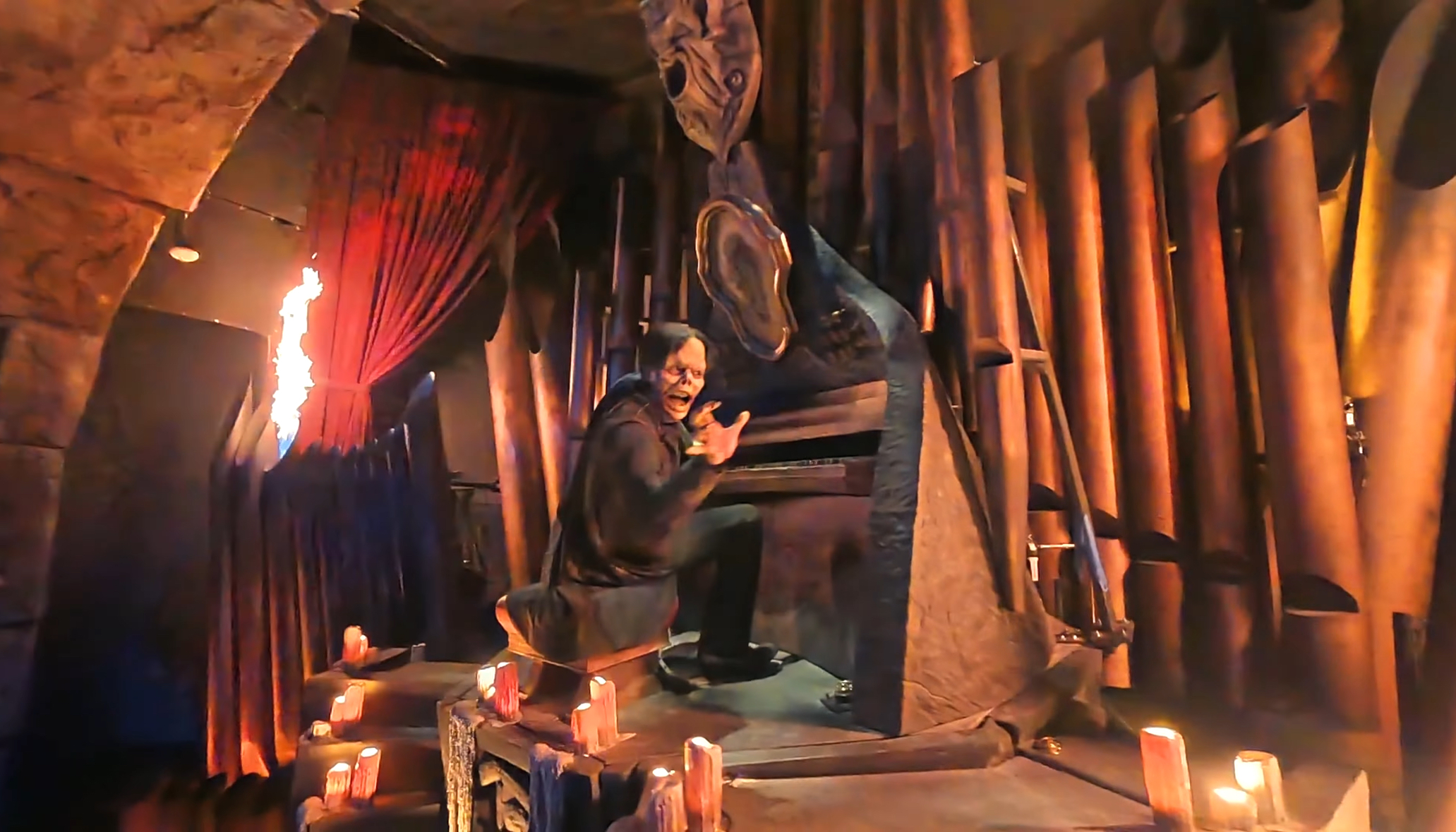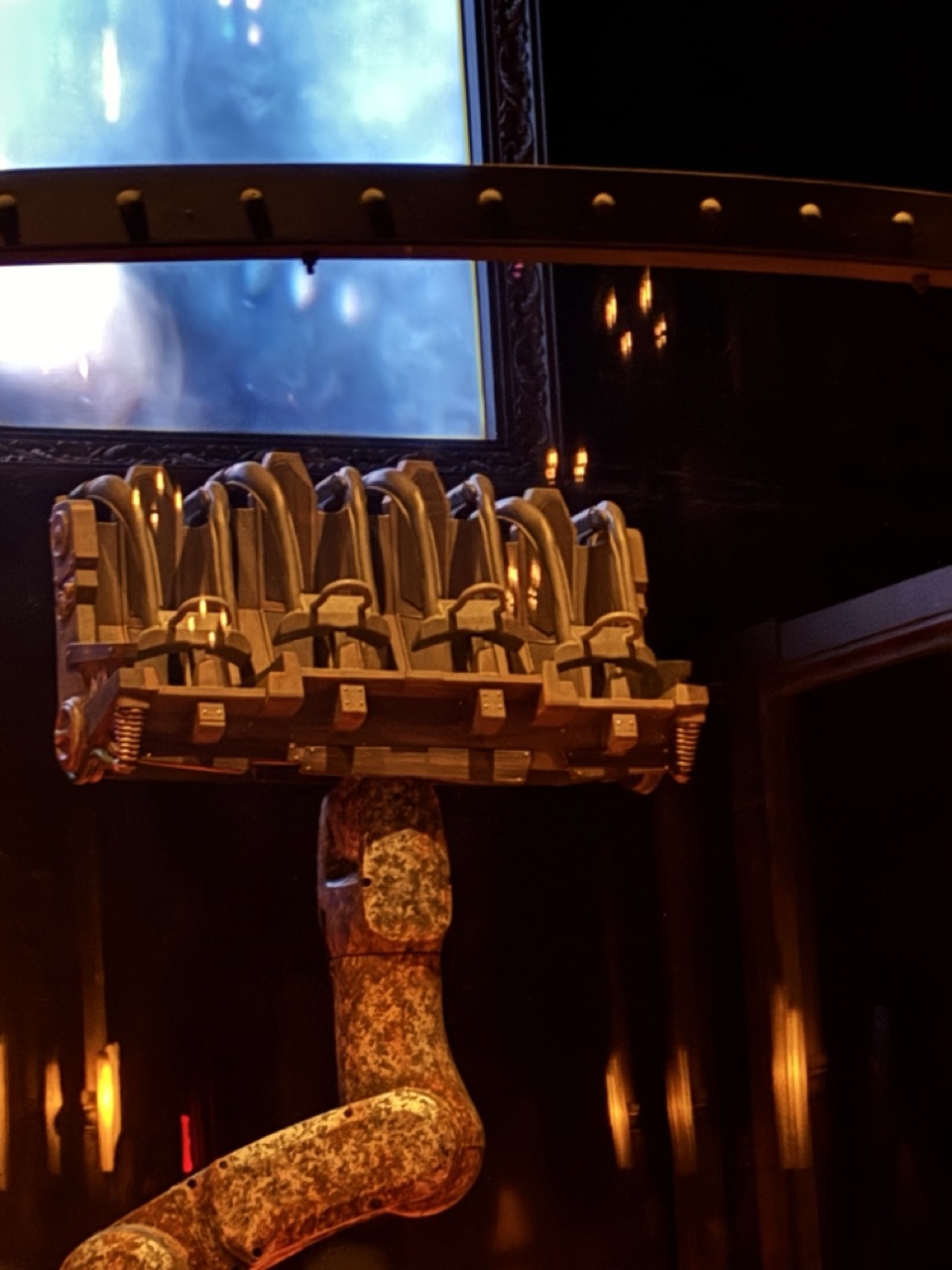 A giant Phantom of the Opera plays a flaming organ and then reaches out towards riders. This first scene gives a sense of scale for how big this attraction can get, some of the sets are massive. There is a lighted board listing of all the monsters under Victoria’s containment, giving a preview of what’s to come, with some surprises thrown in as well.