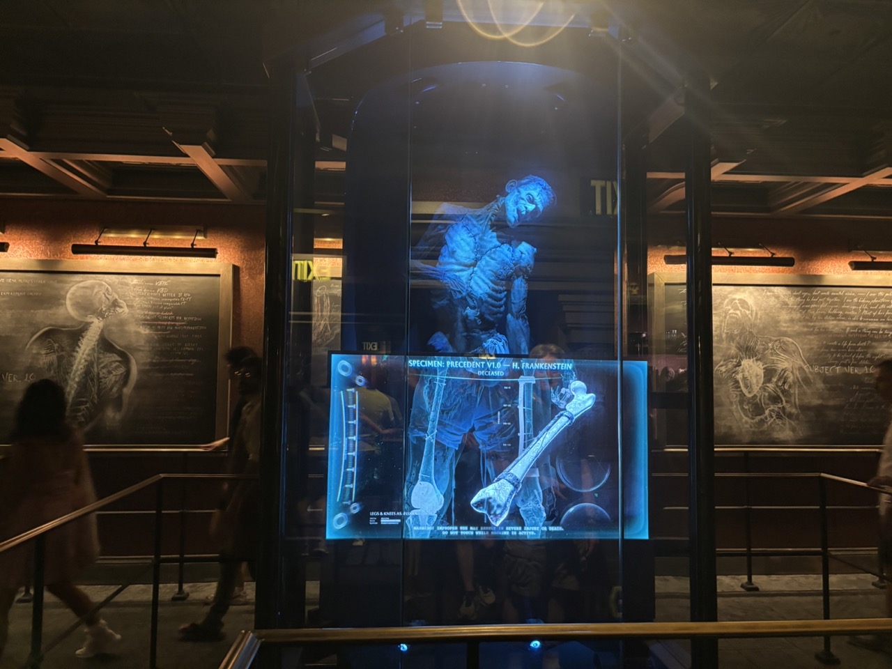 For big Universal Monsters fans, there is the “actual” body of Frankenstein’s monster in one of the rooms, being scanned and analyzed for future experimentation.