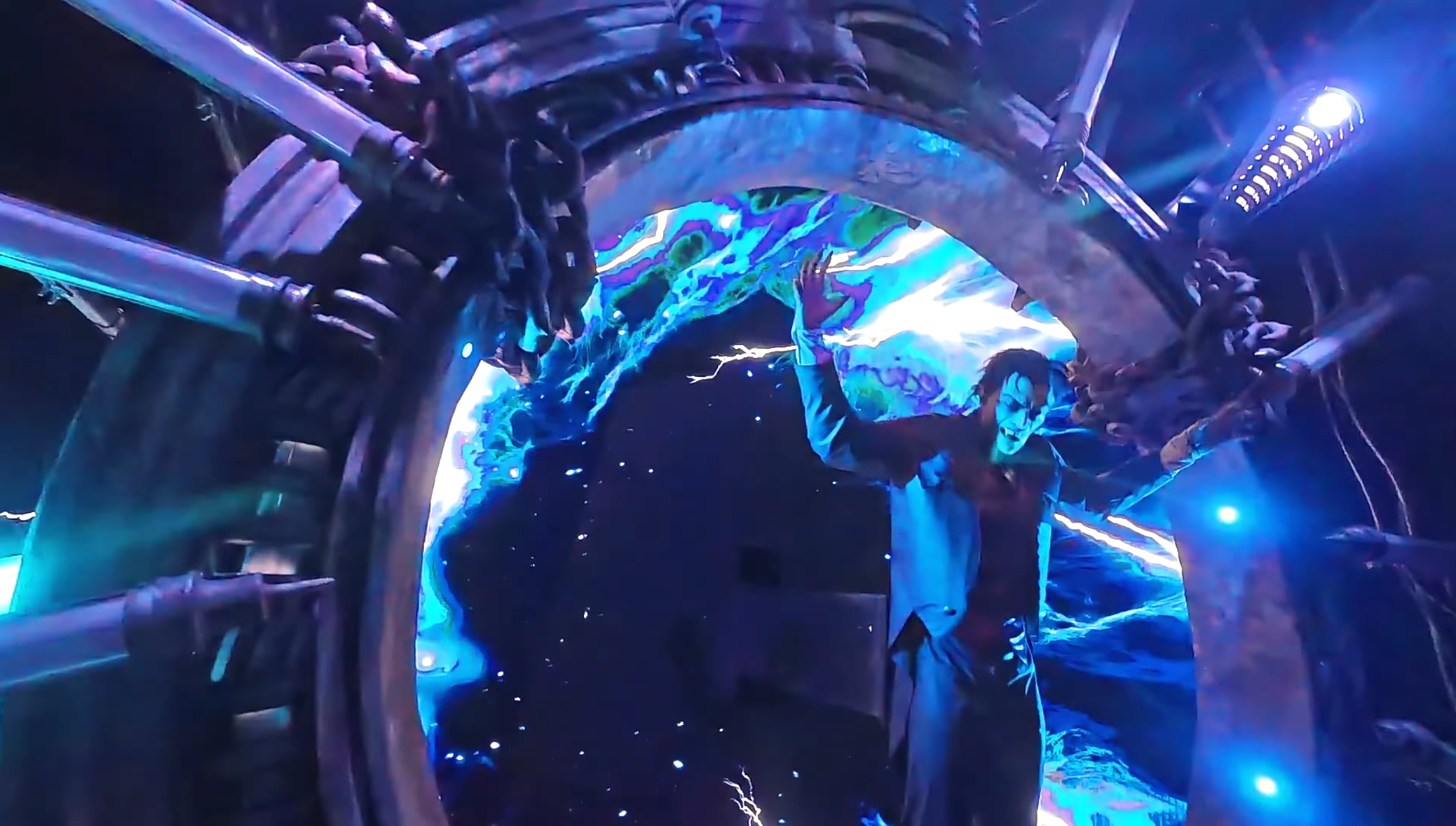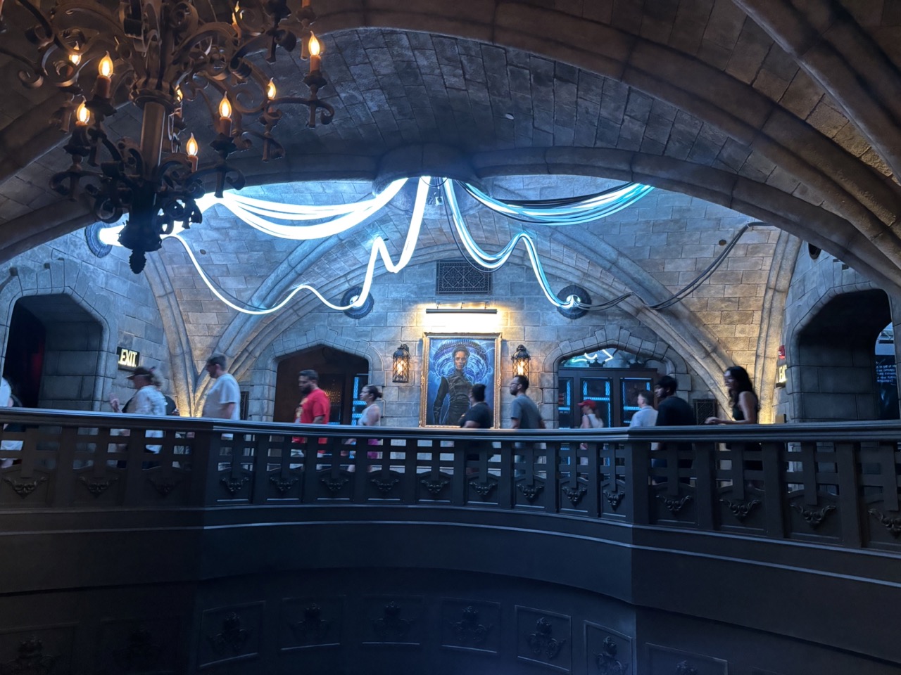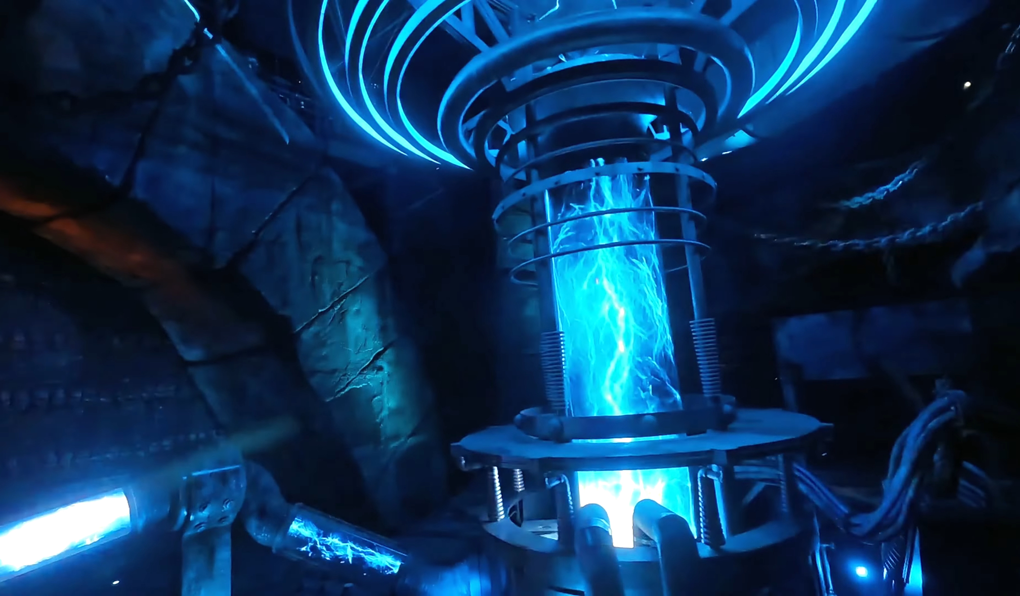 As you walk through the queue, you’ll see cables and wires with flowing electricity leading you into the pre-shows.