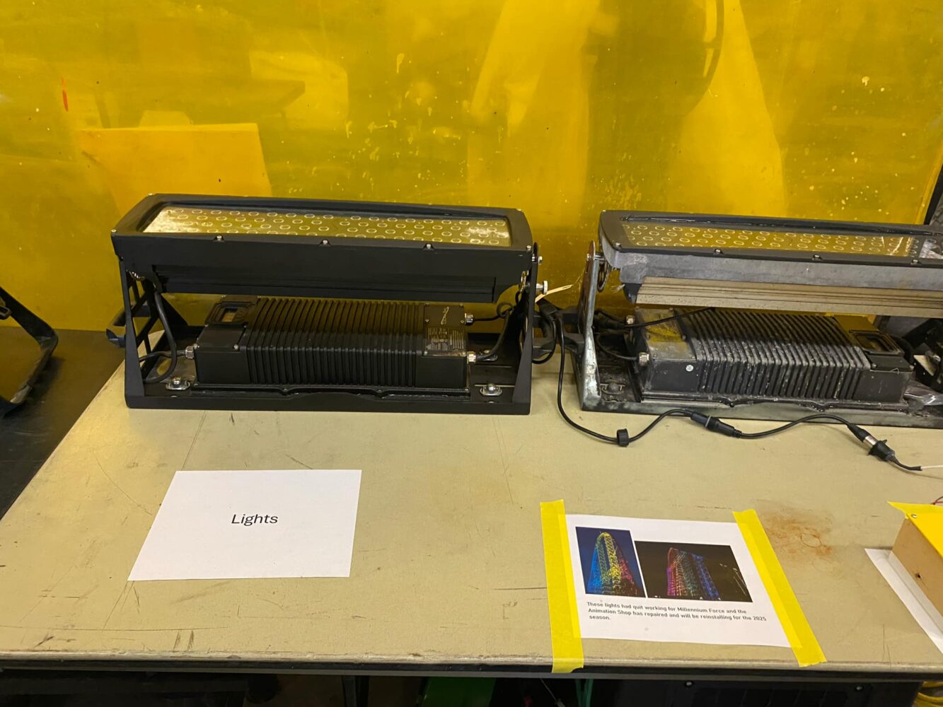 The multi-color support lights under Millennium Force’s supports have been fixed and will return this season.