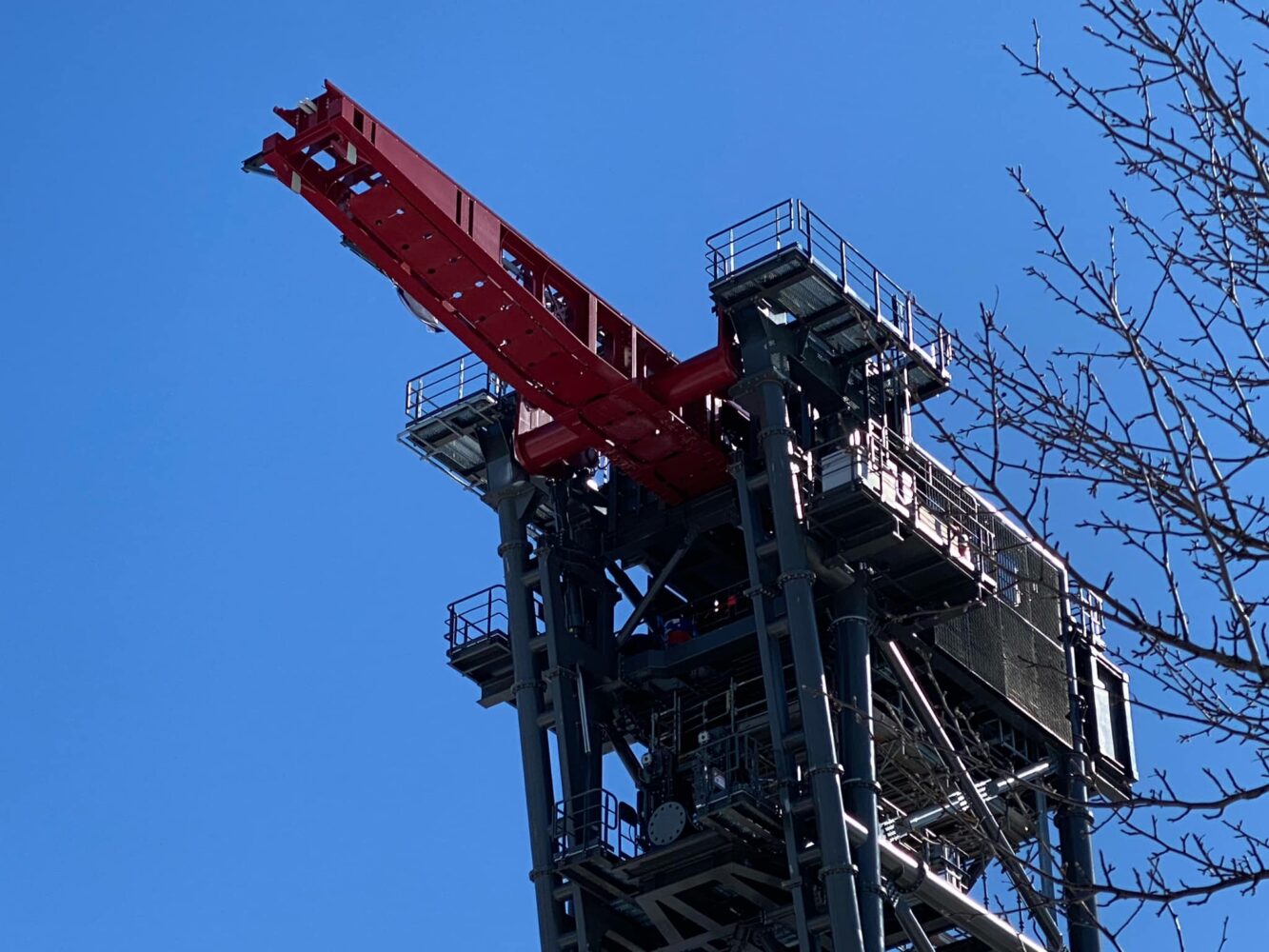 The tilt track piece by itself is 61 feet long and weighs 45 tons. It was installed on February 4th. All part of the tallest, fastest and longest tilt roller coaster in America.