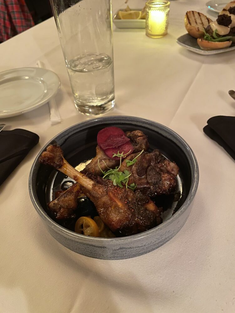 After that, we checked out the only exclusive sit-down option at the event, Jazzy Holidays at the Holiday Brown Derby. This was another highlight of the whole event for me, it definitely felt like a fancy Hollywood party from the 1950s. The menu is only smaller plates and appetizers, but everything I saw looked delicious. I had the Crispy Duck Drumettes, which were duck wings with spicy orange glaze, carrots and kumquats. These were probably the best wings I’ve eaten at Disney, the orange glaze was perfect and the meat was crispy on the outside and wonderfully soft on the inside. I also feel like the portion was perfect for the price, some of the other items at this location seemed small, but the Duck Drumettes were a good size.
