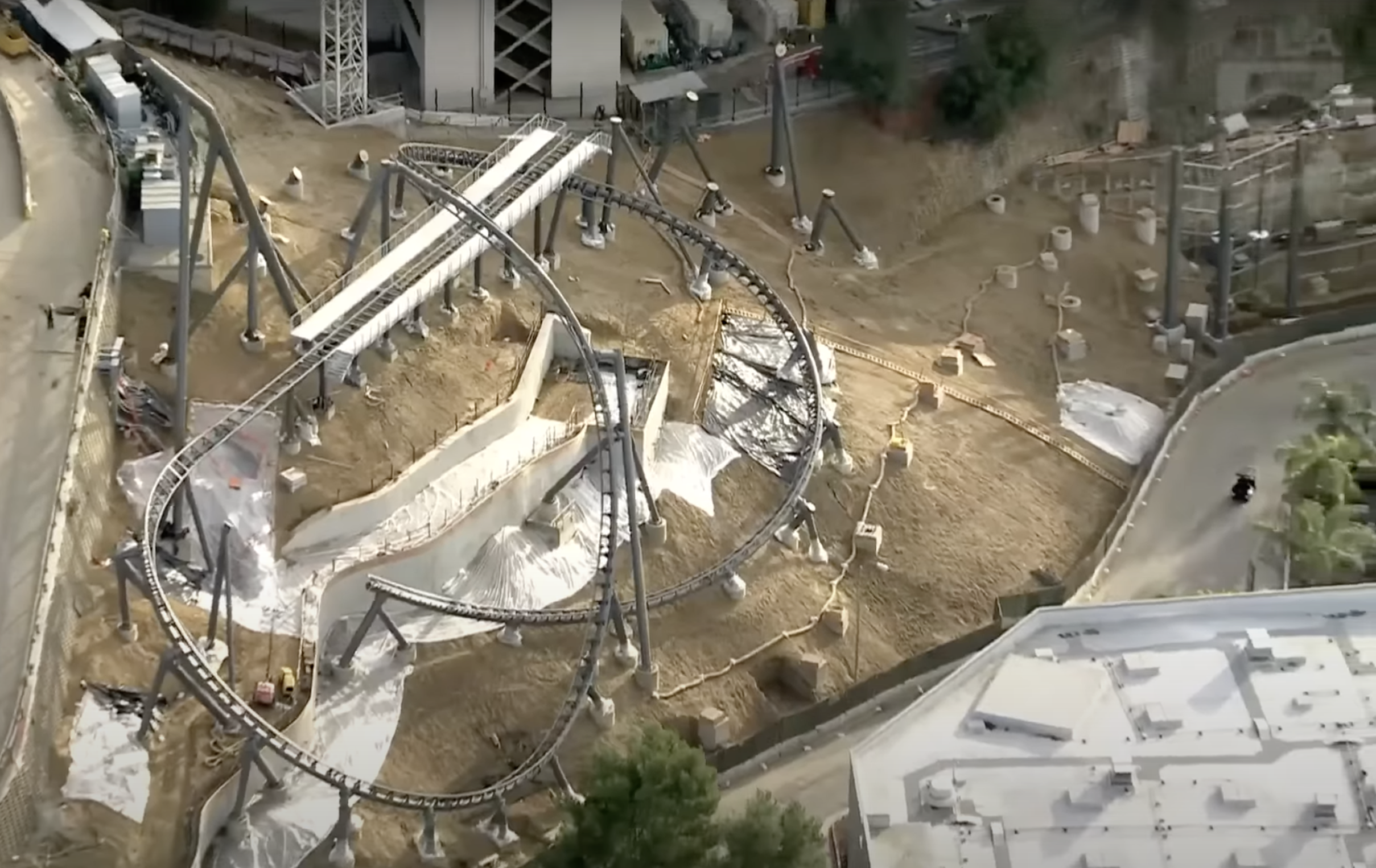 This coaster is undoubtedly one of the most exciting on the horizon for the entire industry, so let’s take a look at exactly what to expect from this first-of-its-kind attraction. Since there are no official photos released, the photos in this article have been sourced from the KTLA flyover of the coaster, and from Amusement Insider’s incredible animated POV.