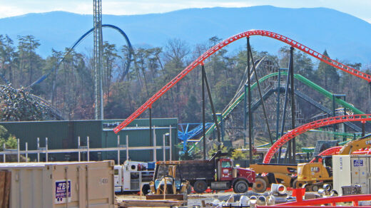 Leviathan at Canada’s Wonderland has been completed, as seen in a video uploaded to the park’s Facebook page. Below are some photos of Leviathan’s nearly-completed track. The bright blue track almost blends perfectly with the clear sky in some of the shots.