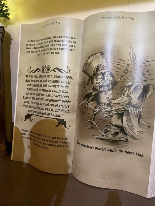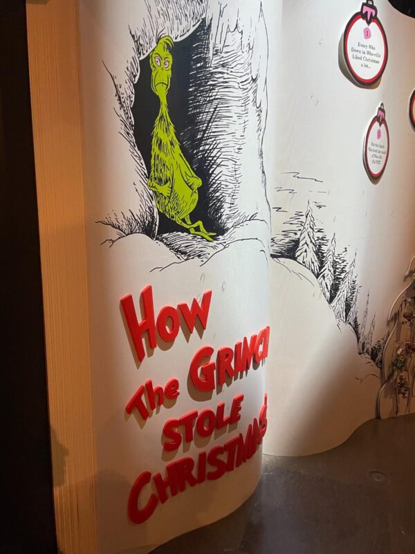 This year’s store features a stunning entrance complete with stacked books and a blurb about the store’s lore. It’s a bookstore come to life and everyone is invited to enjoy the holiday magic inside. This facade is an immediate attention grabber.