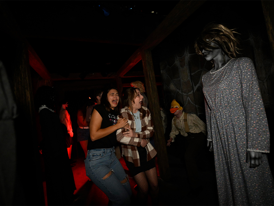 This maze ranked a lot higher after my first pass. Mainly because one scare almost gave me a heart attack. But upon returning, I’ll admit some others outshined it. The house features more generic settings from the movies rather than specific scenes, but I think for the better. While most of the human scare actors aren’t very intimidating—quite calming, actually—the alien creatures were indeed fantastic and terrifying. I noticed many of the aliens were moving props rather than people in costumes, which meant their lurches toward guests were more abrupt and violent. You’ll want to keep your distance in this house, as people in front of you will likely jump back onto your toes.