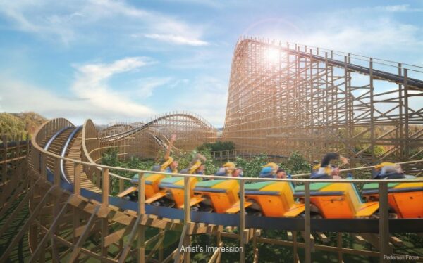 Ireland’s first wooden coaster is currently rising a few miles outside of Dublin. The coaster, which is as yet unnamed, will have a height of 105 feet – the fourth tallest in Europe – a drop of 95 feet, a top speed of 65mph and a length of 4,593 feet. The Gravity Group wood coaster will also feature a 135 degree overbanked curve inversion – the first inverting wood coaster in Europe. Tayto Park will only be entering its fifth year of operation. Below are some artist’s impressions of the park’s first roller coaster.