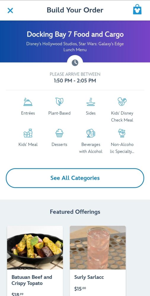 This is great, for example, when you are on the other side of a park, say at Tower of Terror, but want to have lunch at Docking Bay 7 in Galaxy’s Edge. You can order your food on your way and have it ready when you arrive! I can’t express how nice this feature was!