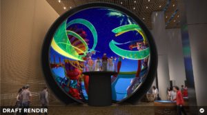 Development of the dome theater dates back to October 2016 when architecture firm Foster+Partners partnered with creative design studio Immersive to develop a state-of-the-art multimedia experience to offer visitors a “vision of the future of entertainment.”