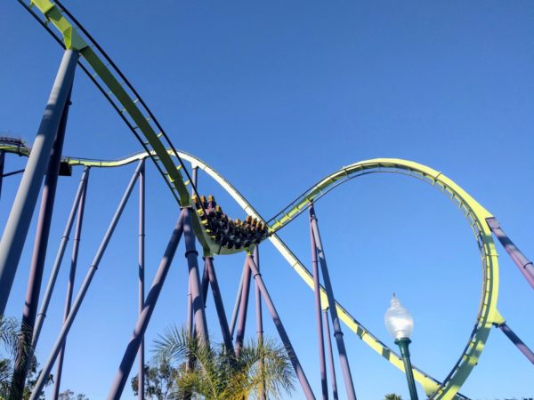 The inversions keep coming with the rare Sea Serpent Roll element. The train first enters a half loop followed by a half corkscrew. It then enters another half corkscrew continuing forward, as if you were on a classic back-to-back corkscrew Arrow ride. The second half corkscrew goes into another half loop that leaves the coaster exiting the double inversion element going in the same direction it entered. It’s kind of like a Cobra Roll, but a Cobra roll reverses the direction of the train.